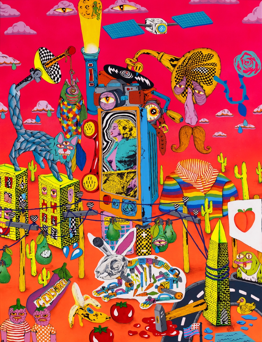 How does one go from Hiiumaa to Paris? Robin Nõgisto was nominated for the Akzo Nobel Art Prize in 2018 and 2021. His first nomination, submitted by Kunst.ee, was for his painting “The Bio Feel” (2017), which was exhibited at the Estonian Artists Association’s annual show. The rainbow-coloured painting features grinning skeletons, factory chimneys and other things of the like. “I think my works exist outside the zeitgeist of any specific era, but they’re definitely influenced by everything I’ve seen since childhood,” he says.