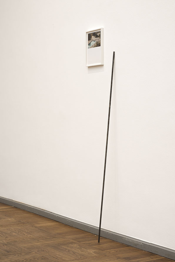 The re-emergence of the aesthetics of classic conceptualism has, on the one hand, brought on modes of exhibiting which, following the tradition, are critical of institutions. On the other hand though, these modes have become new dogmas of their own – for example, positioning a work on the gallery floor so that it rests against the wall, instead of fixing it to the wall. At “Time Lapse”, where a framed photograph hanging on the wall felt like a refreshing exception, one example of such a mode of presentation was Haris Epaminonda’s photograph “Untitled #08 p/q” (2012), placed on the landing of the staircase. The photograph was not only leaning against the wall, but was also half hidden behind a white plinth. Daniel Gustav Cramer’s minimalist installation was exhibited in a similar fashion – the installation itself was made up of an iron rod resting against the wall “IV d” (2014), an iron ball on the floor (“V”, 2013) and two stacks of papers. Also on the floor were photographs of Ats Parve’s series “Nimetada” (To Be Titled, 2015). However, if Cramer was following the canon of minimalism, Parve’s works seemed to be subjugated to the demands of exhibition design.