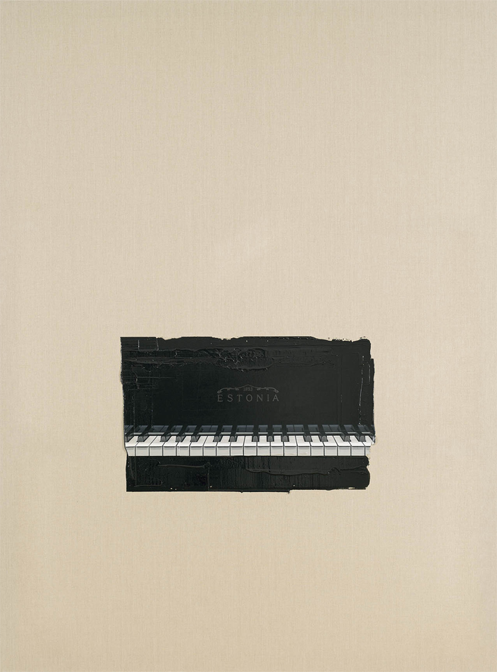 The exhibition “Etudes for Piano and Canvas” at Hobusepea Gallery is comprised of the same paintings that were exhibited from 19 June to 30 August last year at Tartu Art Museum. In addition, there is one new painting, which is only an empty “screen”. The viewer can thus project anything on that screen with the permission of the artist. When I was talking with an art critic who was visiting Tartu, a surprising association was pointed out to me with David Cronenberg’s film “Crash” (1996), which is about car crash fetishism – human and machine melting together. When I visited the exhibition at Hobusepea Gallery, I was instead reminded of the film “Blade Runner” and more precisely the motif of the replicant. Quite possibly when asking a music critic for a written opinion of Saadoja’s work, we would get an essay on the music of Kraftwerk, which is simultaneously humanely warm and machine-like cold. So there is something to this.