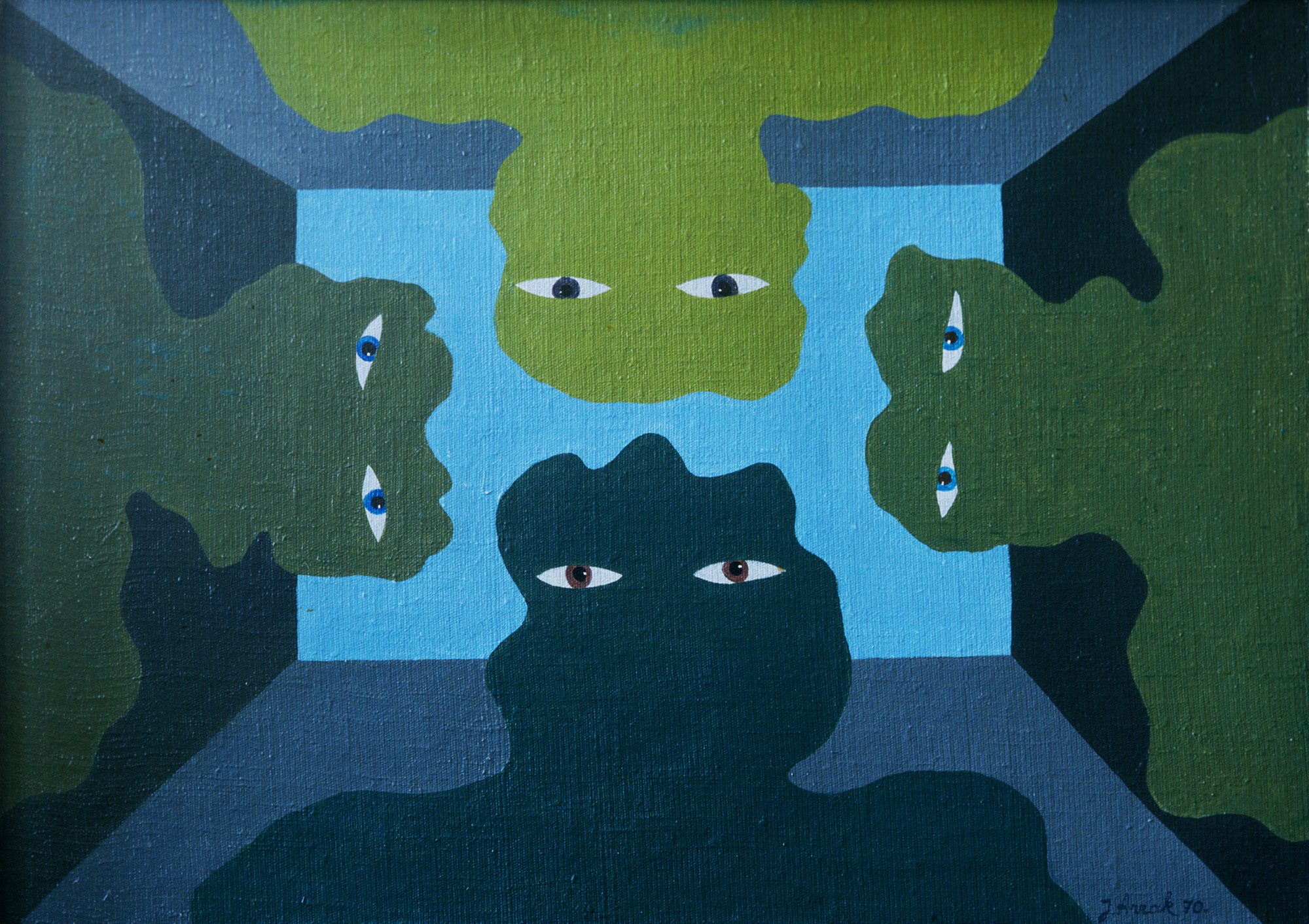 See on küll siinkirjutaja spekulatsioon (nagu öeldud, kunstnik ei mäleta), kuid “Juhtumi” plahvatav pea oleks otsekui andnud “maivi” mõtestamiseks võtme, oma brutaalses konkreetsuses. Parimaks illustratsiooniks sellest on “Laudkond” (1970, õli). Popilikus lakoonilisuses on kujutatud tsentraalperspektiivis pikk laud, eeskõnelejaga otsanukil, kummalgi pool istumas paar figuuri. Maal juhib vaataja pilgu piki lauda ning loob sellega kolm gruppi. Esimeses, vaatajapoolses, näeme kahte lääbakil figuuri, ennemini arpilikke amorfseid tegelasi kui väärikaid “maive”. Neile järgneb eeskõnelejapoolne paarik: aktiivsem, tähelepanelikum, kuulavam. Siin on Arpi mõju aina keerulisem näha: kuulajate vorm on konkreetsem, mõtteaktiivsus otsekui väljenduks kasvavas “sarvilisuses”.