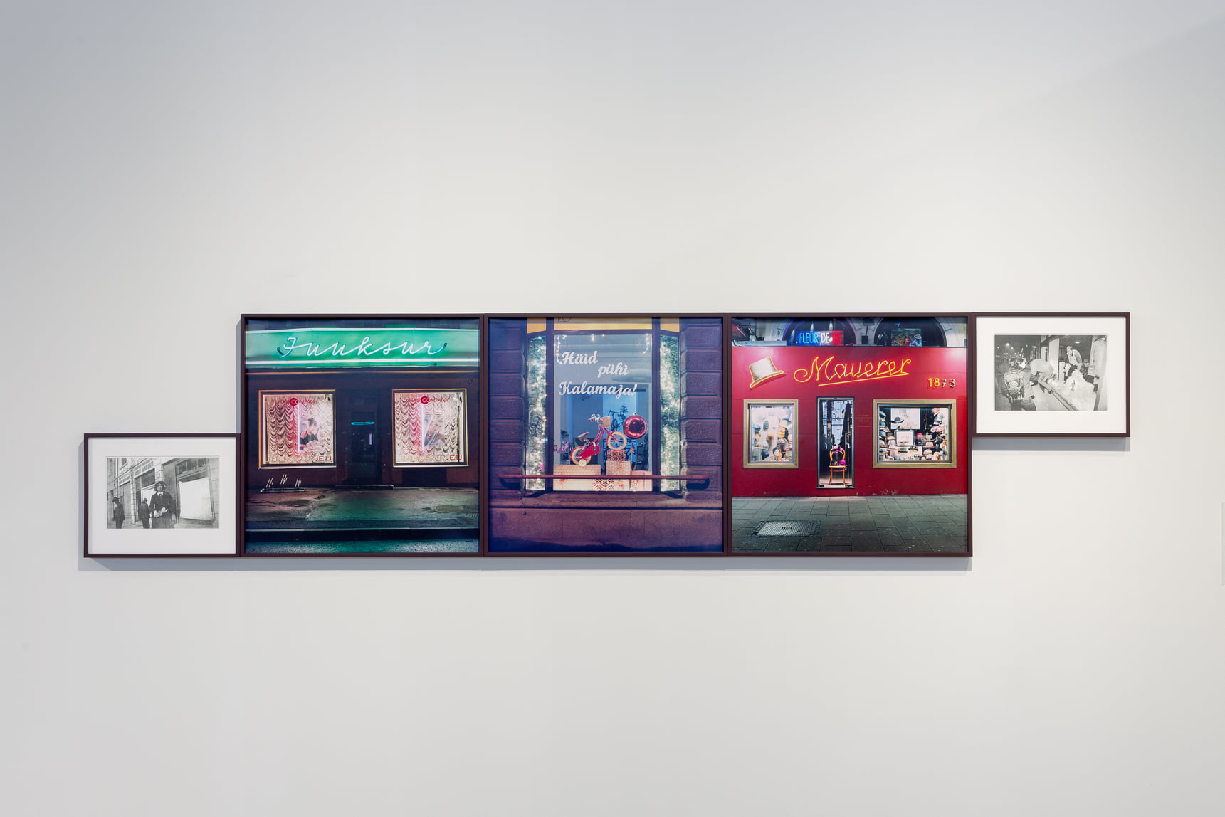 Tegelikult ise avastasin ka alles siis, kui ma neid fotosid laboris printisin, et nendel piltidel on kolmas kiht veel. Esiteks vitriinis olev väljapanek, teiseks on fassaad ja klaas, mis selle väljapaneku meist eraldab, aga kolmas tasand on peegeldused. Kui neid pilte lähedalt vaadata, siis klaasil olevate peegelduste kaudu on võimalik tuletada, mis asub akna vastas üle tänava.