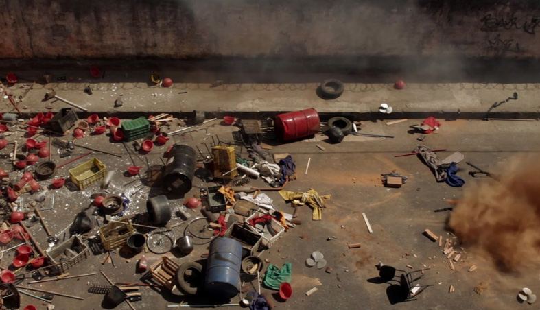 Videokaamera ei liigu. Liigub kraam, mida pillutakse näha olevasse mitte-kohta – mingile tühjale tagahoovile või krundile, millest saab koht mitte valiku tulemusel, vaid seeläbi, et ta lihtsalt juhtub olema seal, kus ta on. On suitsu ja müra – miski puruneb, luues brutaalselt mõjusa helimaastiku, ülejäänud kraam aga jätab maha vähem dramaatilise helijälje.