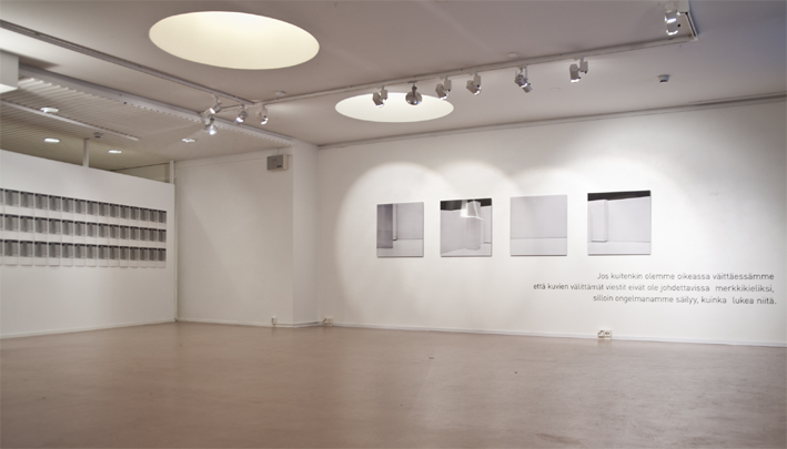 2012. aastal lõpetab Napa galerii Rovaniemis näitusetegevuse Jorma Etontie’l asuvates ruumides, Alvar Aalto projekteeritud avaliku raamatukogu nurgatoas. Hüvastijätuetendus tuleb Dénes Farkasilt, kes pakub publikule kvaasi-kujutisi ruumist endast, ülendades selle näituse teemaks. Diametraalne sümmeetria Tallinna kaasusega on pealetükkiv, ometi ka veidi eksitav. Lõppude lõpuks kuulutati neil päevil Tallinnas, kaugetel üheksakümnendatel, uut tulevikku, tõotati paremat elu kui mitte kogu lihtrahvale, siis osale kunstnikest kindlasti. Farkasi nüüdne näitus “Kuvista sanoin” (Piltidest sõnadeks) Rovaniemis lahustab aga näituseruumi õõnsaks, küsitavaks ja üürikeseks miraažiks, mis kipub vaatajate silmist hajuma, juhul muidugi, kui leidub mõni tunnistajast silmapaar. George Steinmanni projekt ei tõmmanud ligi laia publikut, ehkki ta tagastas neile tunnetuse vältimatu mõõdupuu – ruumi. Kas võime loota, et Dénes Farkasit, kes kandib tuttavaid tubaseid vaateid kõledateks ja lohututeks atollisaarteks, tervitatakse ülistava kriitikaga? Vaevalt küll, mina selle peale kihla ei veaks. Põhjamaine modernism oli üdini kargeks ja kalgiks tardunud juba enne Farkasi saabumist. Riisudes sellelt tardkivimilt viimasegi ülesehitava sisu ei ole võimalik uusi sõpru leida, oletan ma. Ehkki polaaröö teeb ainesega sedasama – uputab selle kahtluse varjudesse.