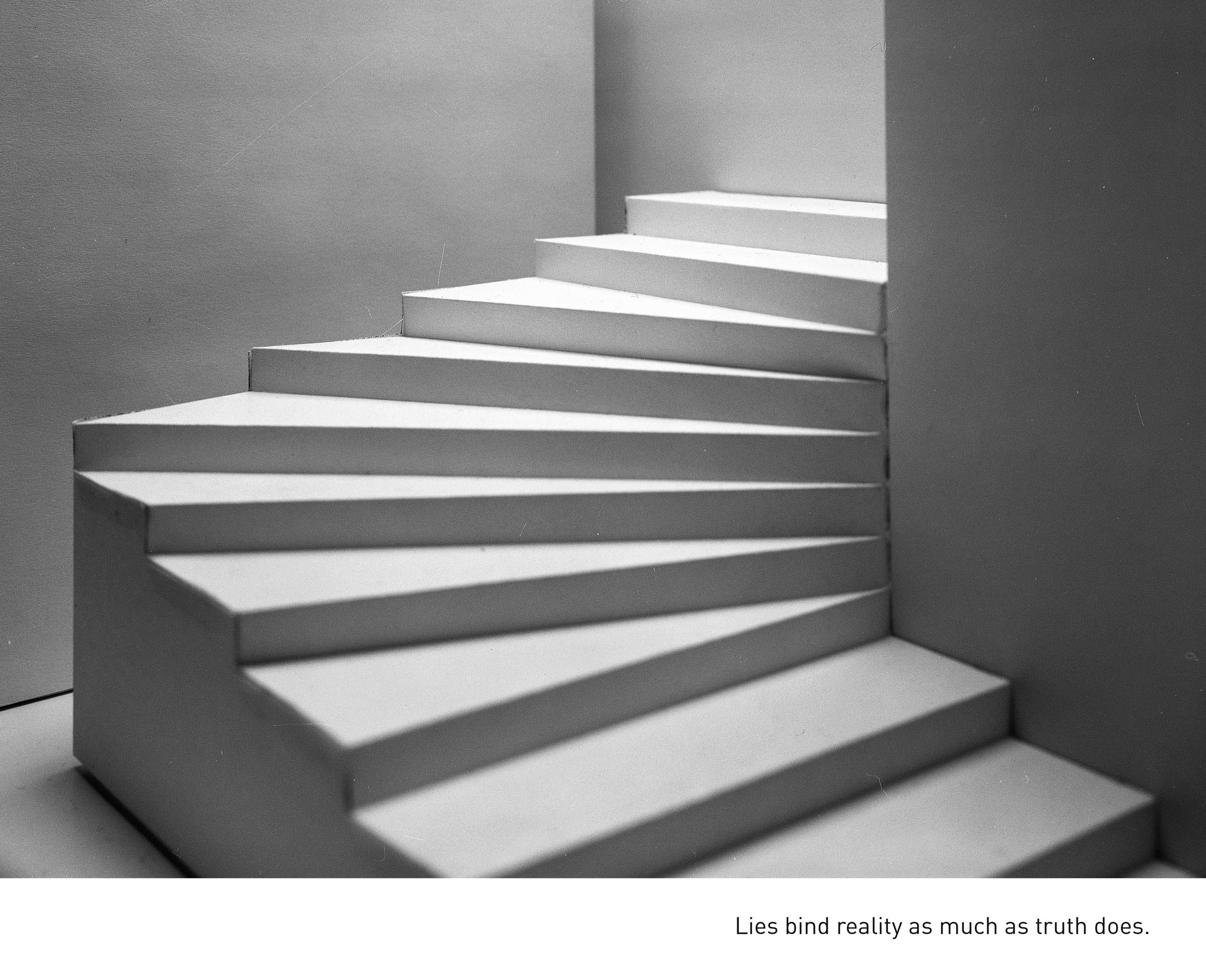Keel ja arhitektuur on vastastikku peegeldavad. Keeleline, keele kaudu vormitud kirjeldus maailmast on olemuslikult arhitektuurne. Samamoodi on klassikaline arhitektuuritraditsioon oma kõikehaaravuse ambitsioonis entsüklopeediline – arhitekt kui demiurg, arhitektuur kui “ülim teadus” ehk kõigi kunstide ja teaduste sünteesija. Just see teineteise peegeldus kihutab Wittgensteini ehitama oma filosoofiale ruumilist ekvivalenti – korrastatust, mis püsiks – ja Farkast leidma kommunikatsioonihäirele ja tähendustekaole ruumikujutuslikku vastet – õigemini, lagundama homogeenset maailmatükki ühekorraga nii keele kui ruumi kaudu. Sest kõige enam on see lagundamise, õõnestamise projekt: ehitada tillukesi hapraid papist maailmu, millele fotod annavad nende tegelikkusega võrreldamatu mastaapsuse ja veenvuse, seda sealsamas saboteerides, kui fotosuurenduses paljastub vältimatu ebatäiuslikkus, mikroskoopilised praod osutuvad seinu rebestavaiks lõhedeks, väljavalgunud liim kompromiteerib idealistlikud puhtad pinnad.